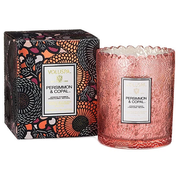 6.2oz Persimmon and copal box scallop candlepot, Voluspa.